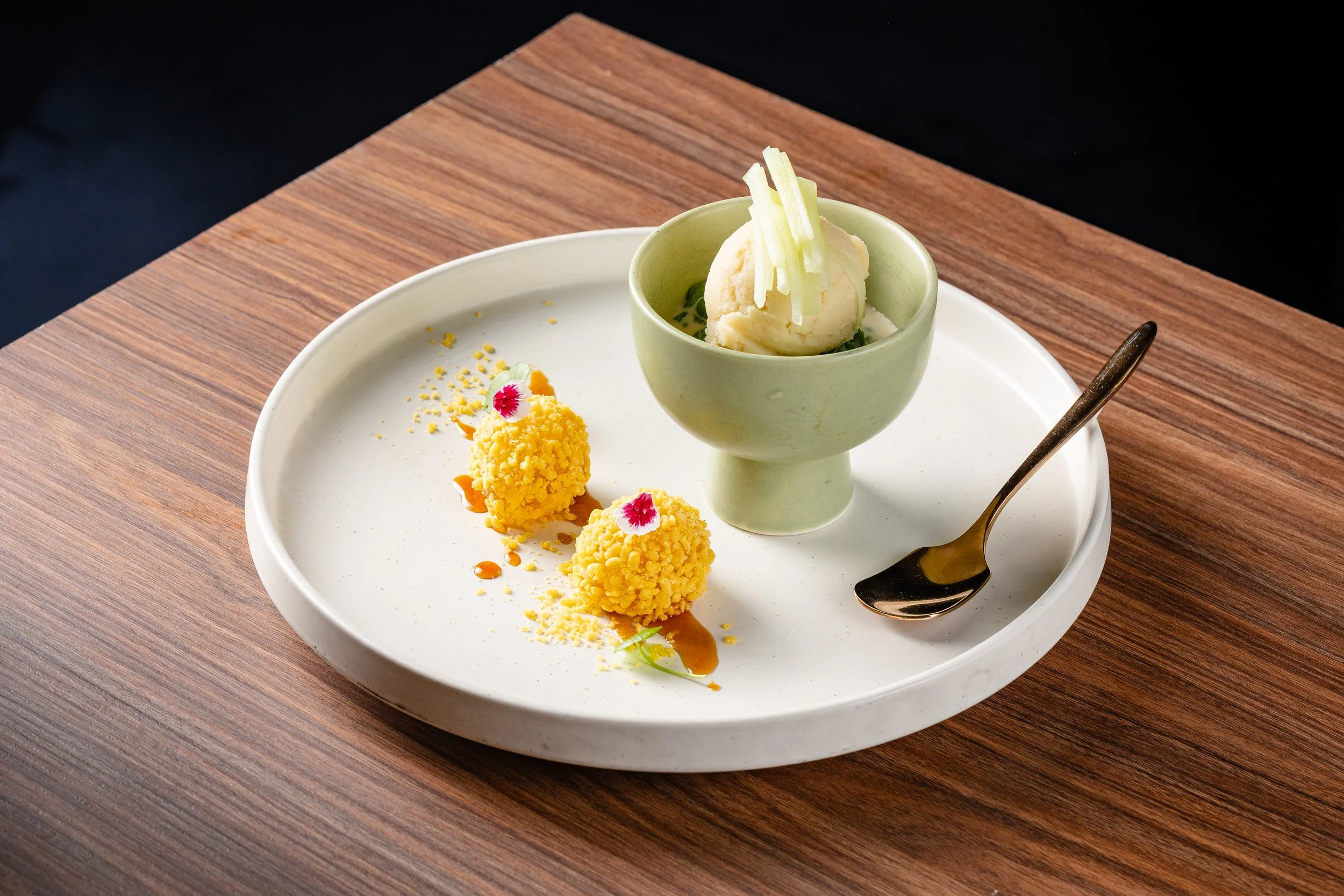 Coconut Flower Syrup, and Mung Bean Crumble