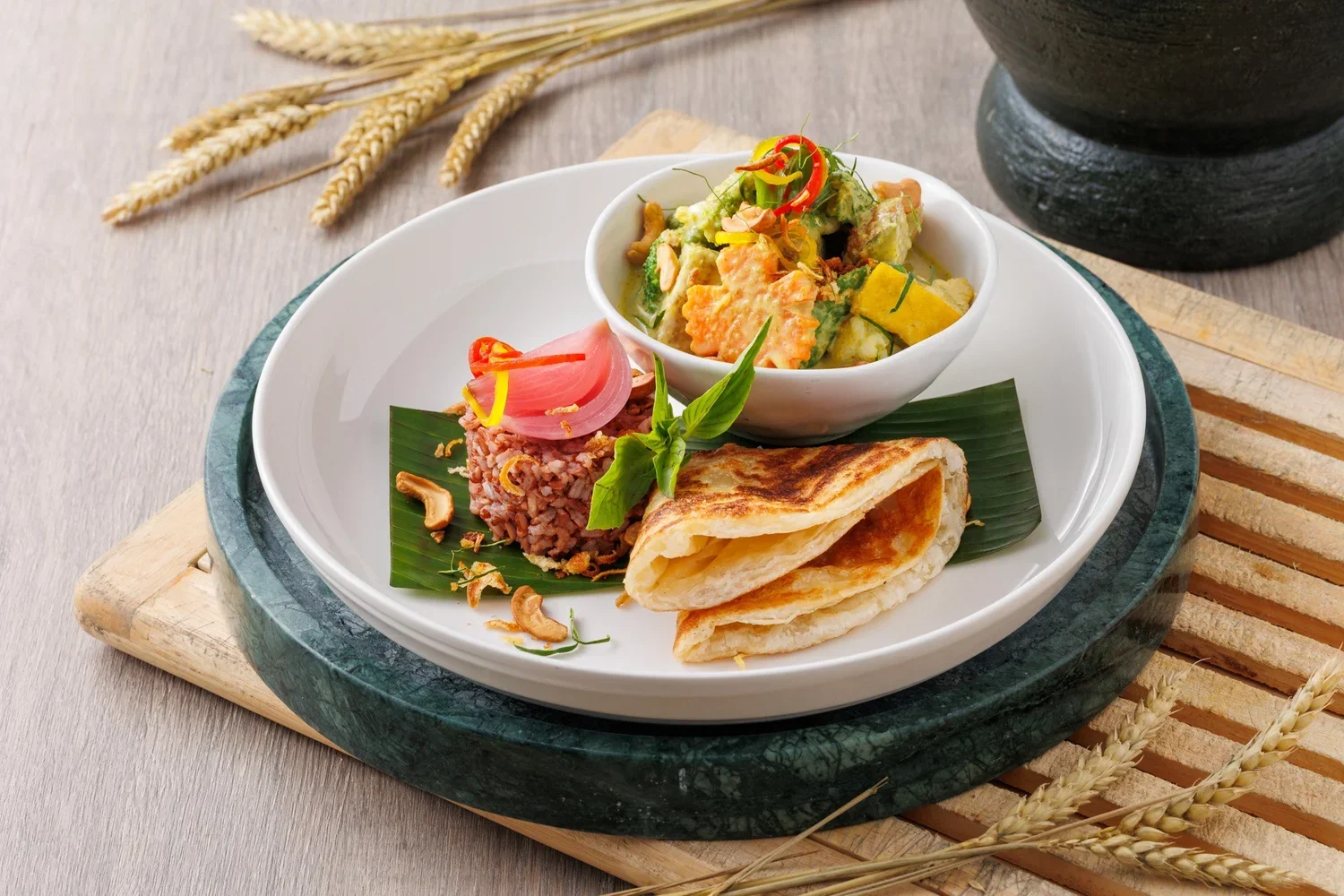 Tortilla Wraps with Golek Phuket Vermicelli, Turmeric Grilled Chicken, Chives, Bean Sprouts