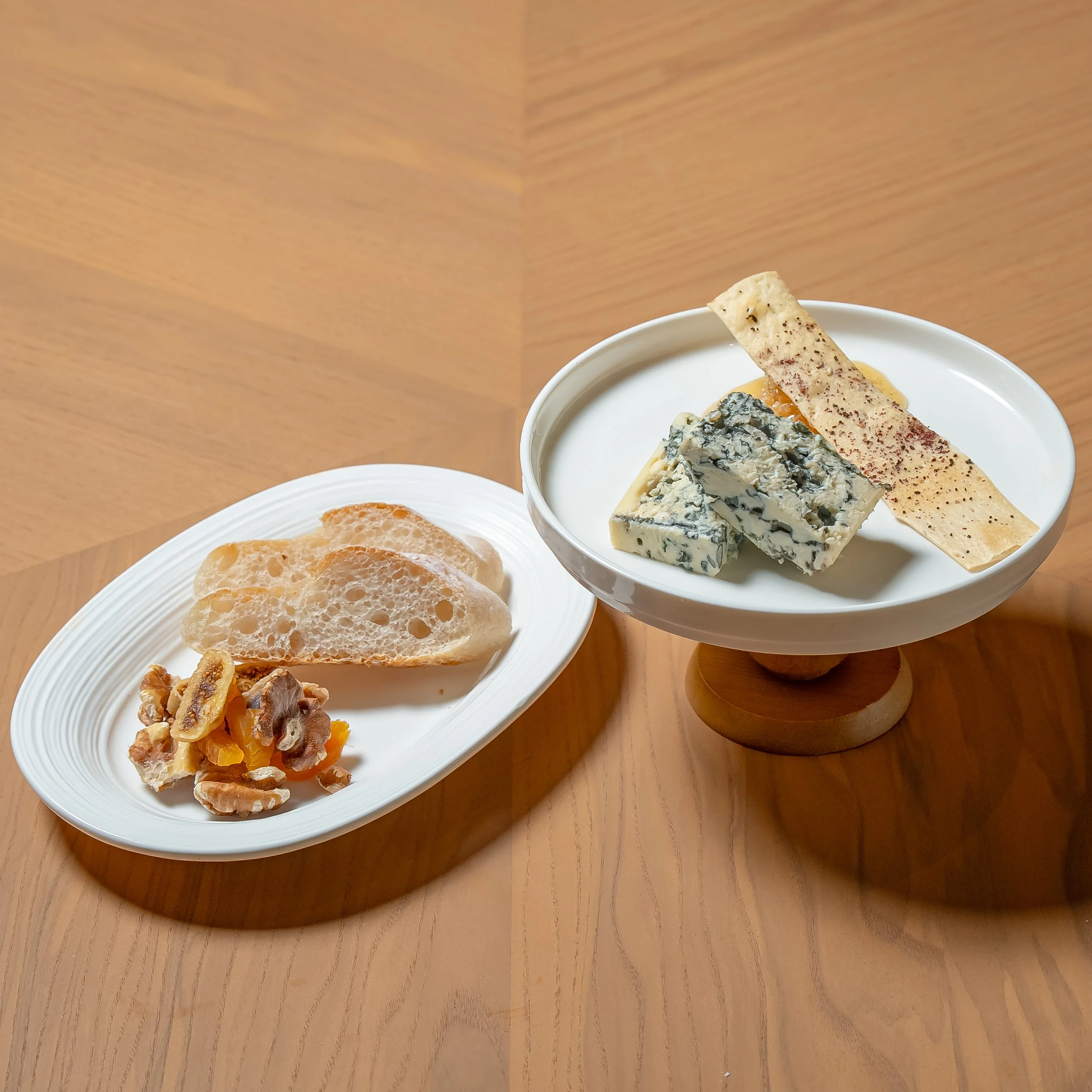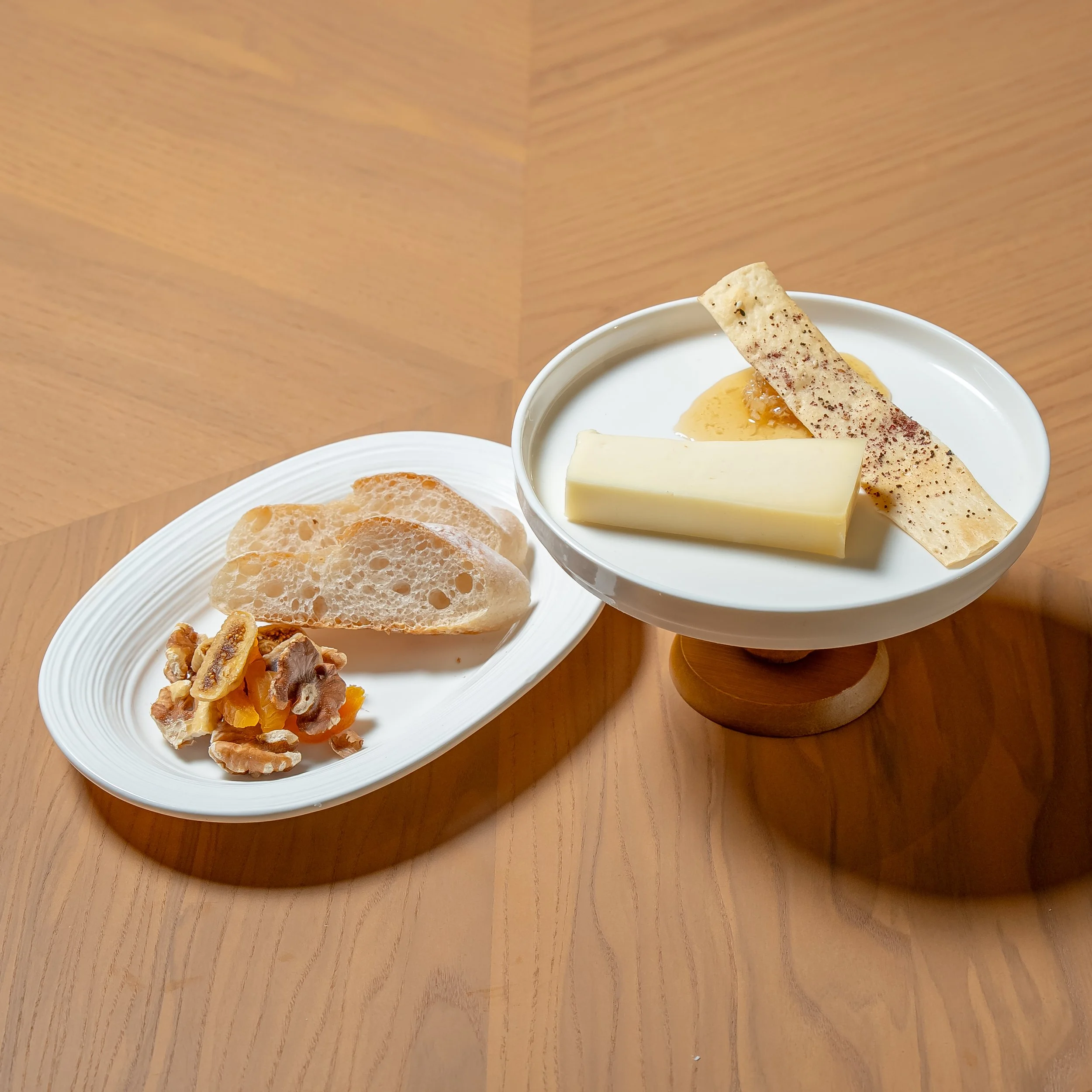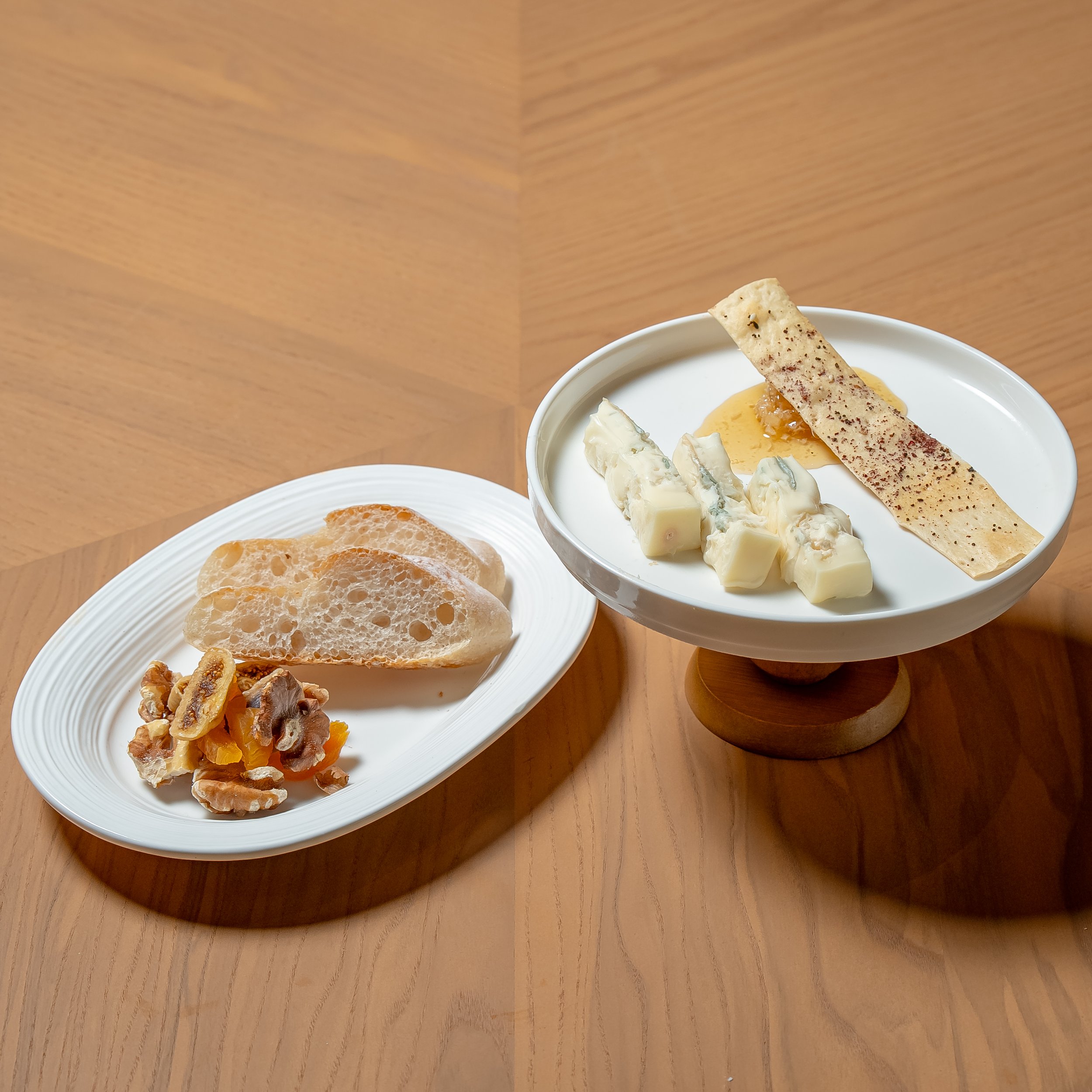 50 grams per serving, accompanied by baguette, honeycomb, dried fruit, walnuts