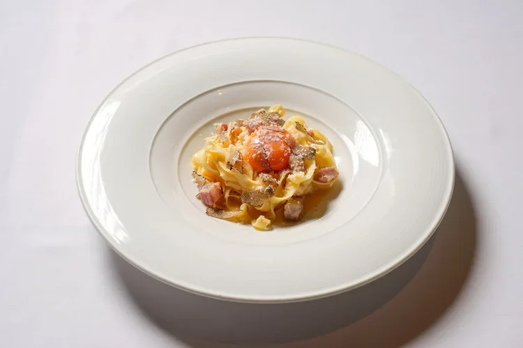 宽面,猪颊肉,松露,蛋黄,帕尔马干酪