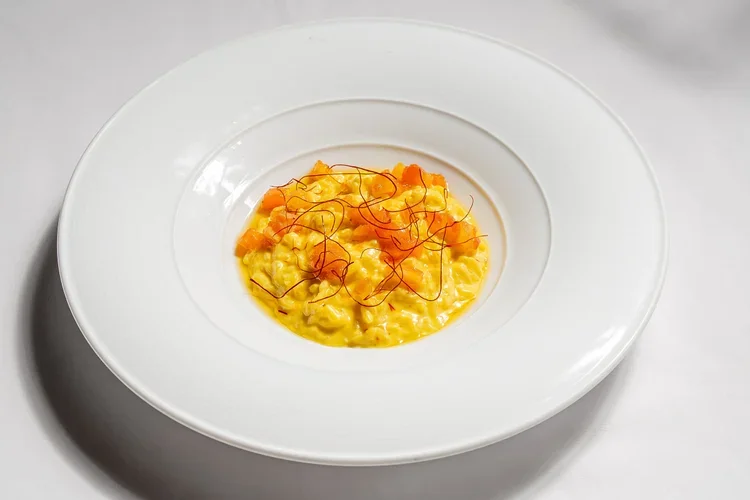 藏红花烩饭,油封番茄和藏红花,辣椒丝