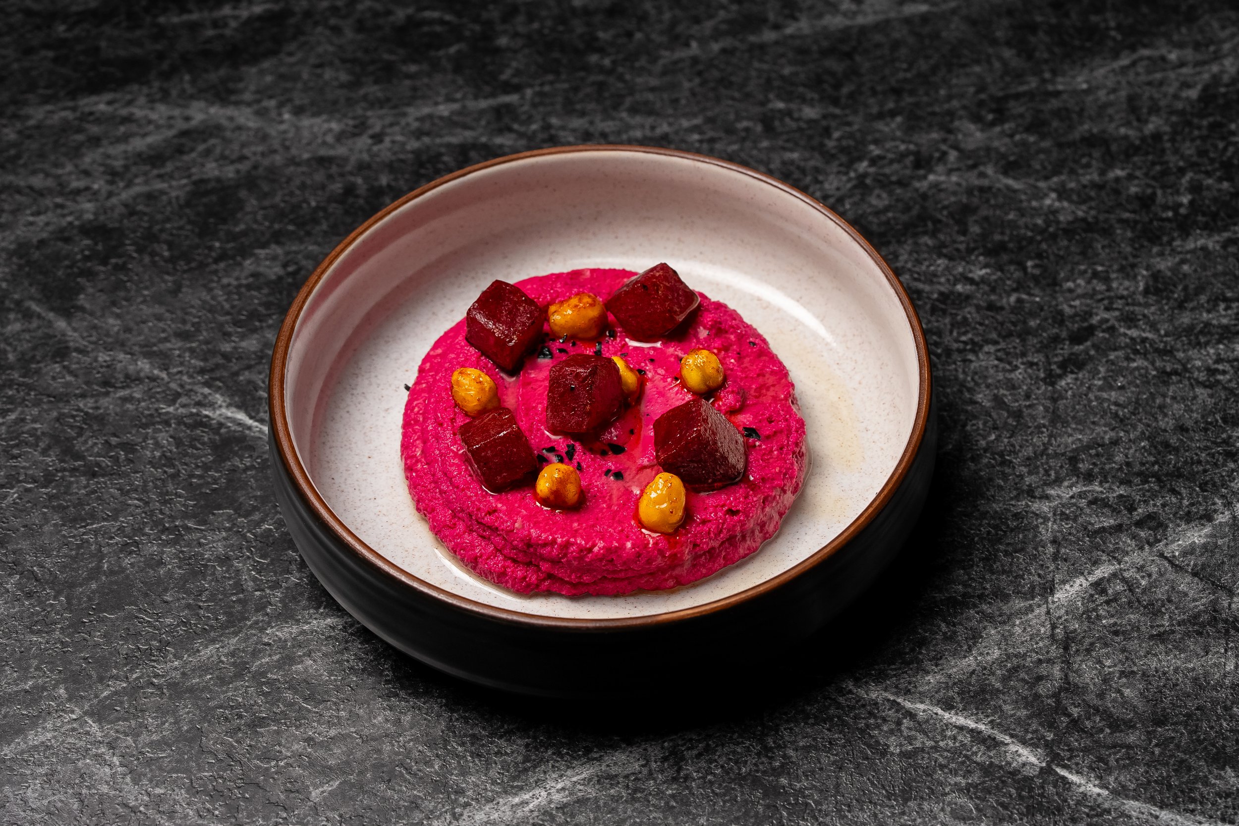 Beetroot Hummus, Spiced Chickpeas