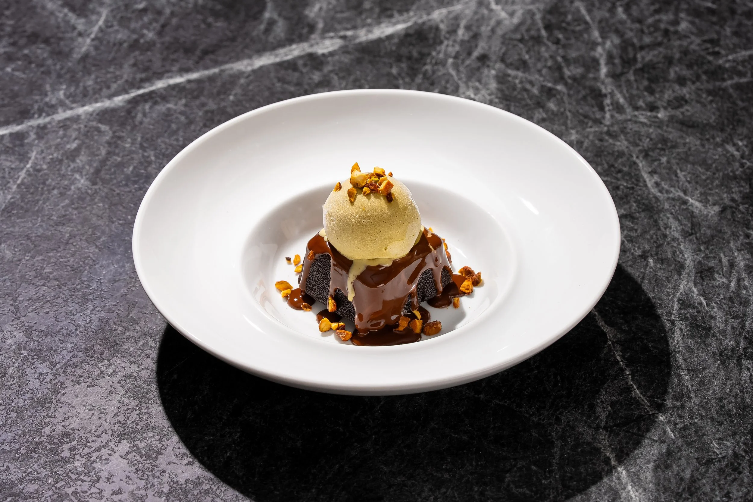 Chocolate Semolina Cake, Pistachio Ice Cream