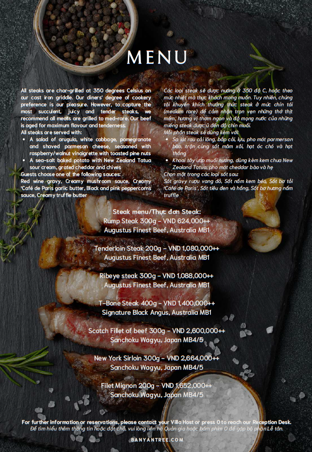 Prices are in Vietnamese Dong and subject to 5% service charge and applicable tax.