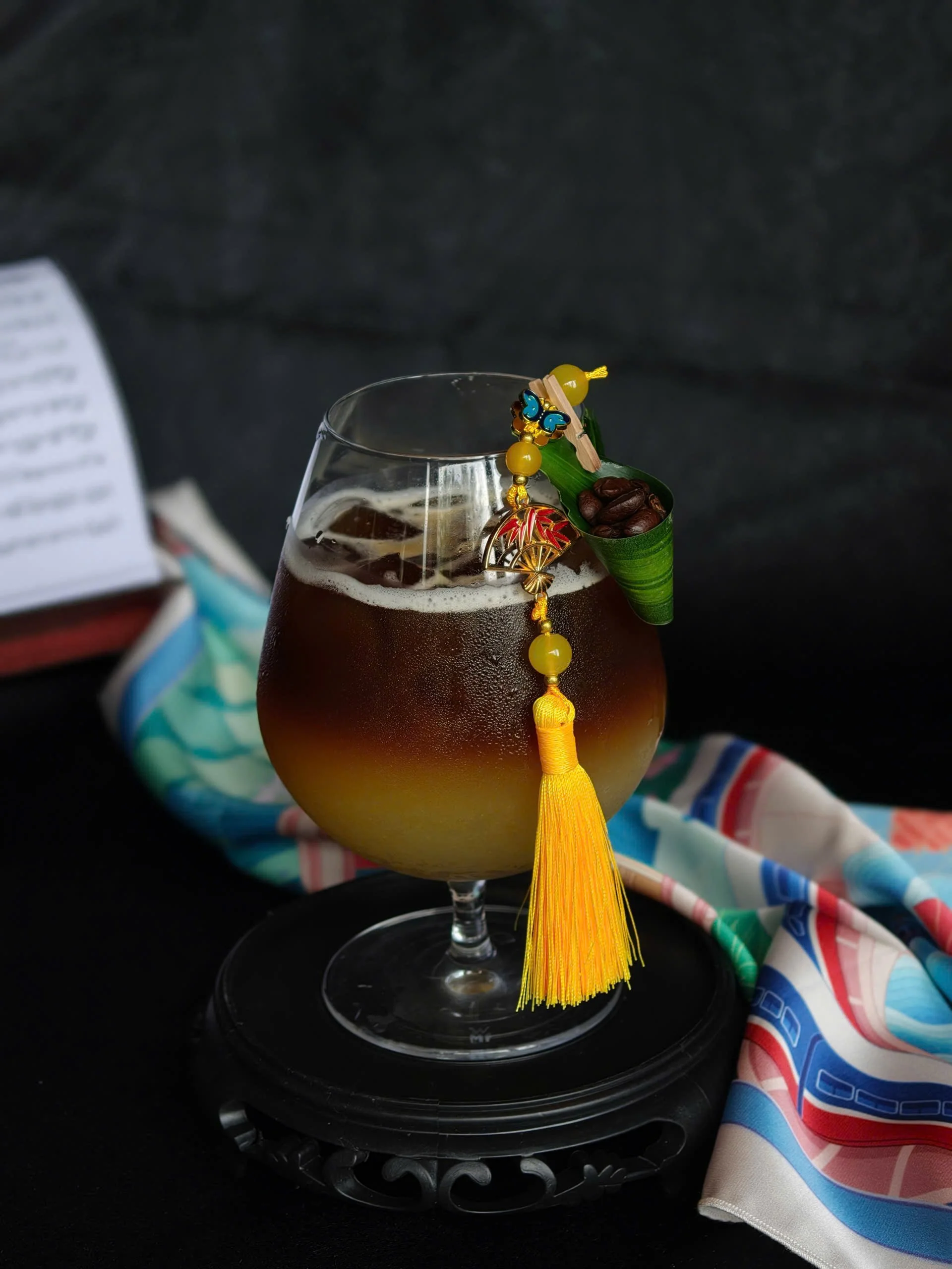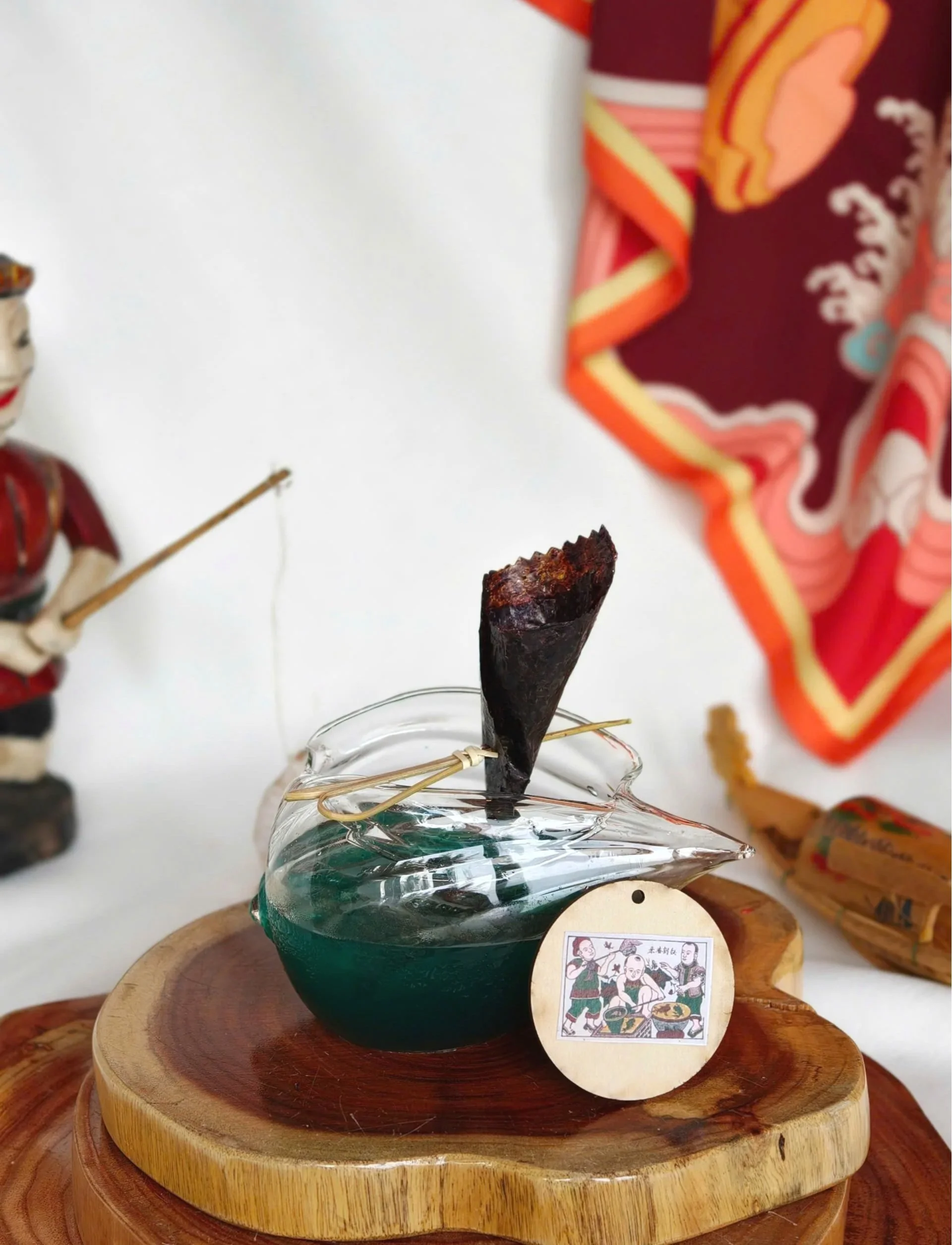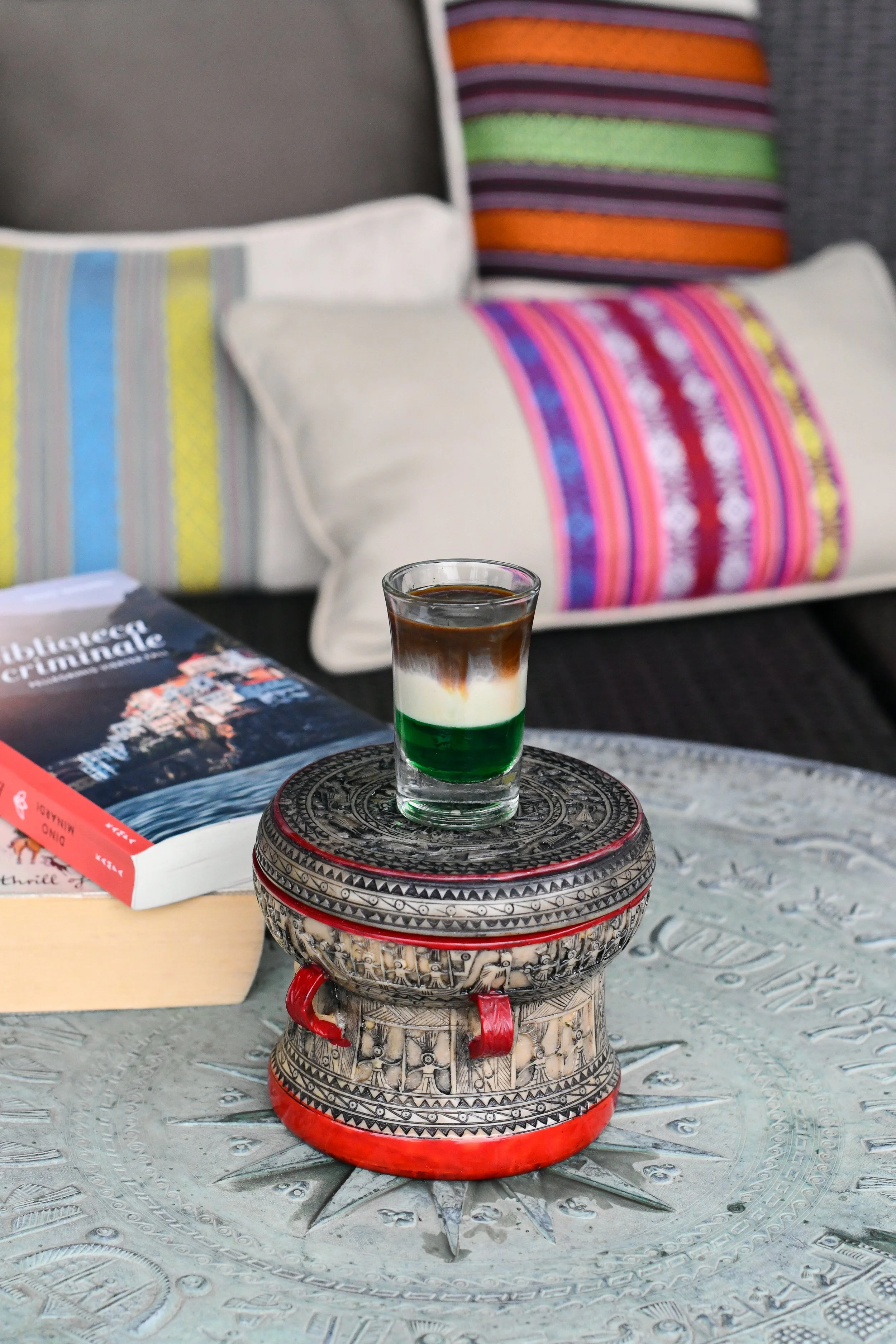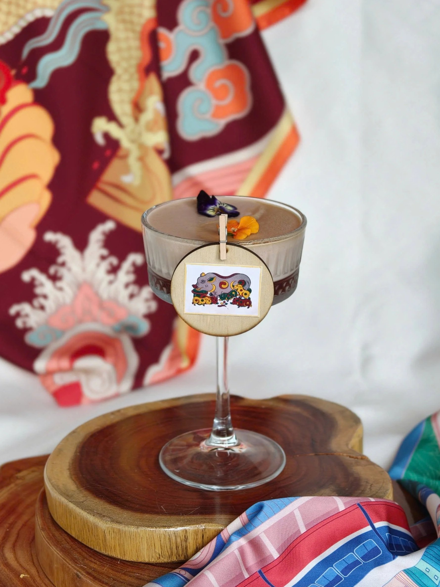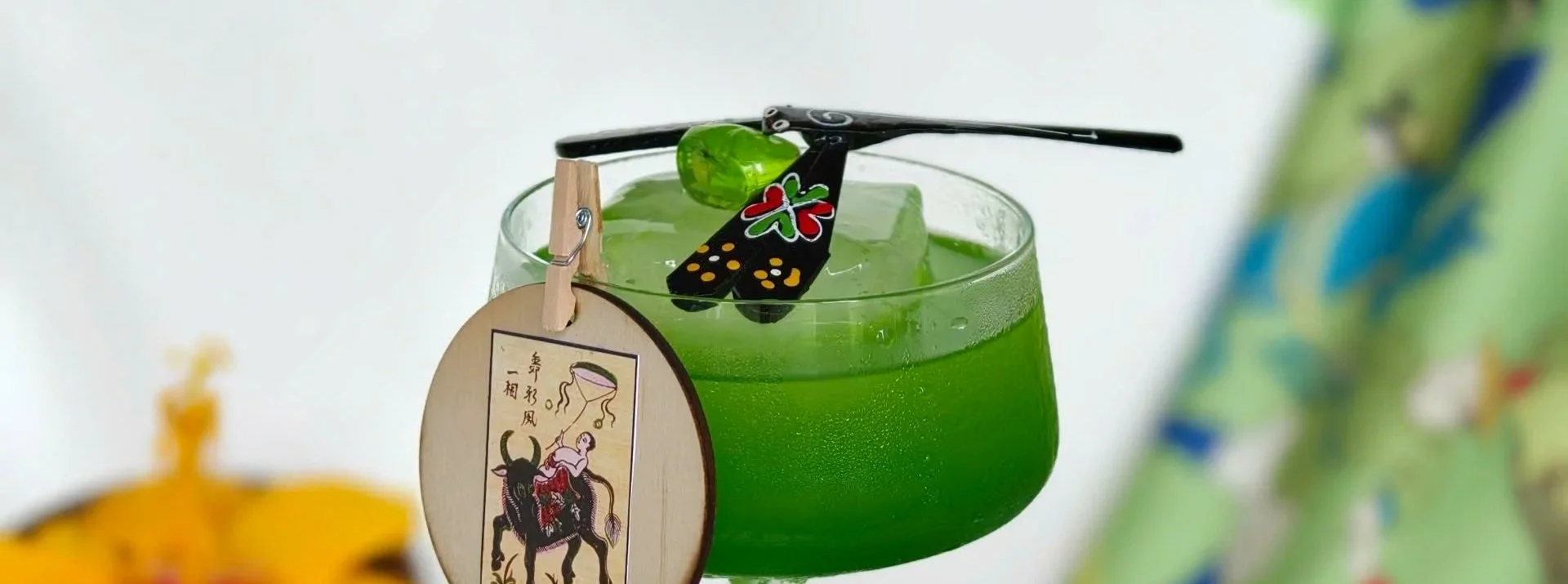 Lotus infused Vodka Men, Mango infused Sampan Rhum, Lime Juice, Pineapple Juice, Hibiscus Syrup, Lemongrass, Passion Fruit, Chilli Sauce, Soya Sauce, Shrimp Salt
