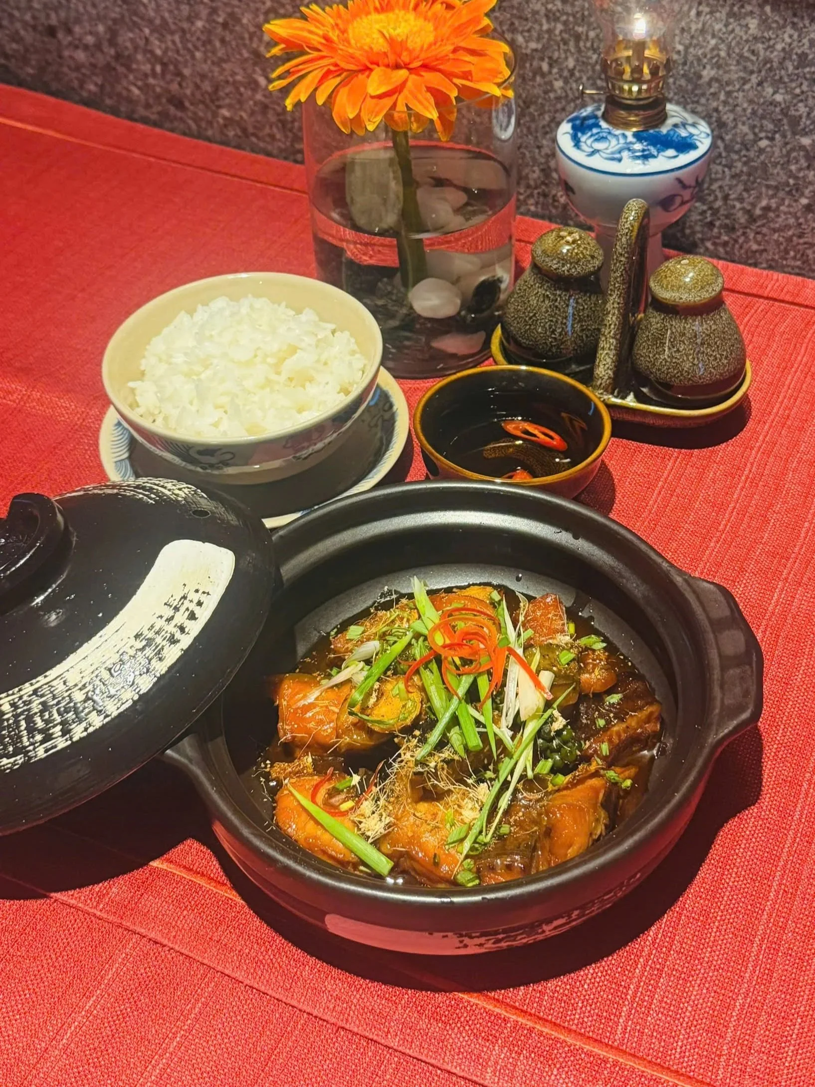 caramelized sugar, and fish sauce. Served with steamed rice