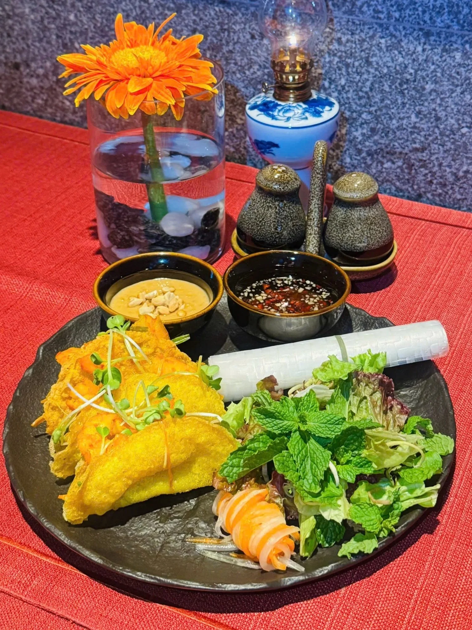 Filled with prawns, ebiko, mixed greens, Vietnamese herbs,