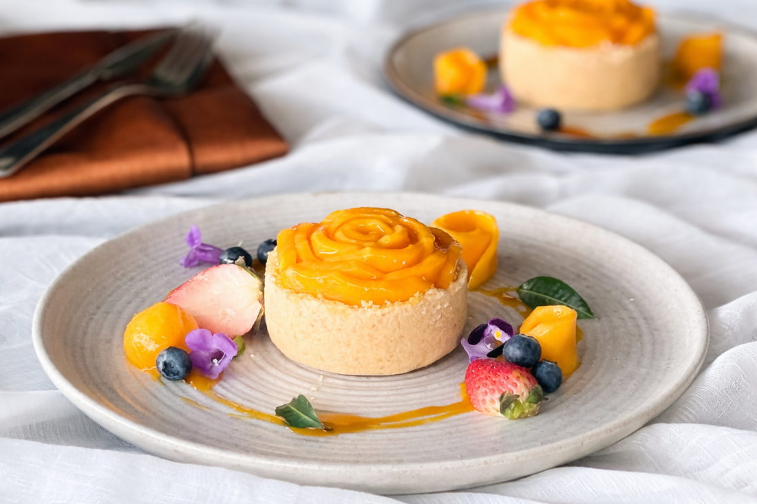 Delight in the elegance of our Mango Tango Cheese Tart