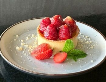 A classic strawberry tart with smooth vanilla cream and a crisp golden crust.