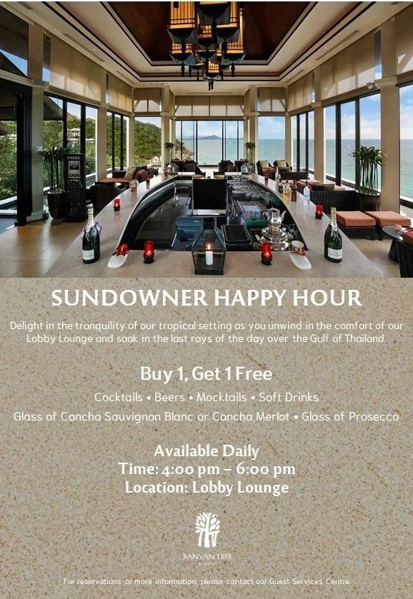 for afternoon tea; or you may opt for one of Banyan Tree Samui’s signature cocktails